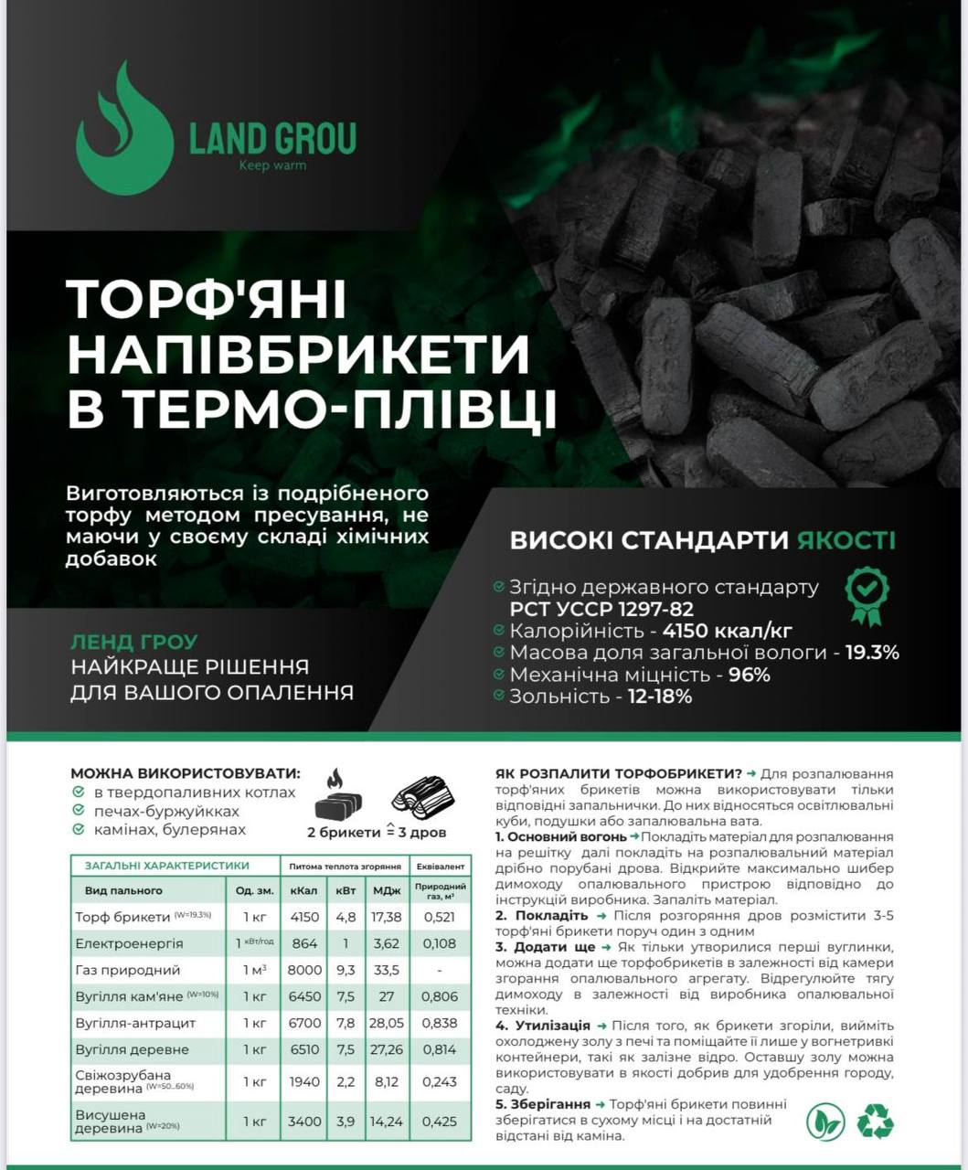- Тип палива: торф’яні брикети